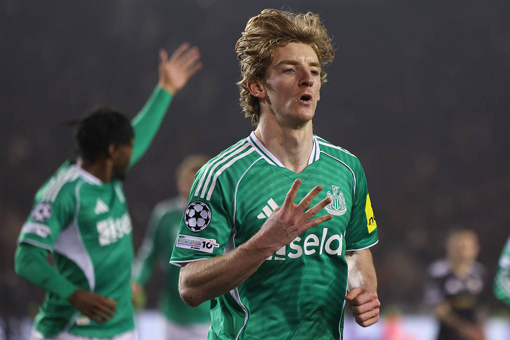 北京时间2月19日,欧冠淘汰赛附加赛首回合,纽卡斯尔客场6-1大胜卡拉巴赫。喜鹊前锋安东尼-戈登在比赛第3分钟,第32分钟,第33分钟和第45+1分钟上演大四喜,帮助球队“半场开香槟”。